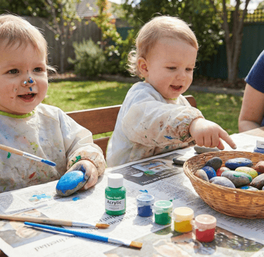 Collect leaves and do leaf rubbings. Paint stones. Make a nature collage.